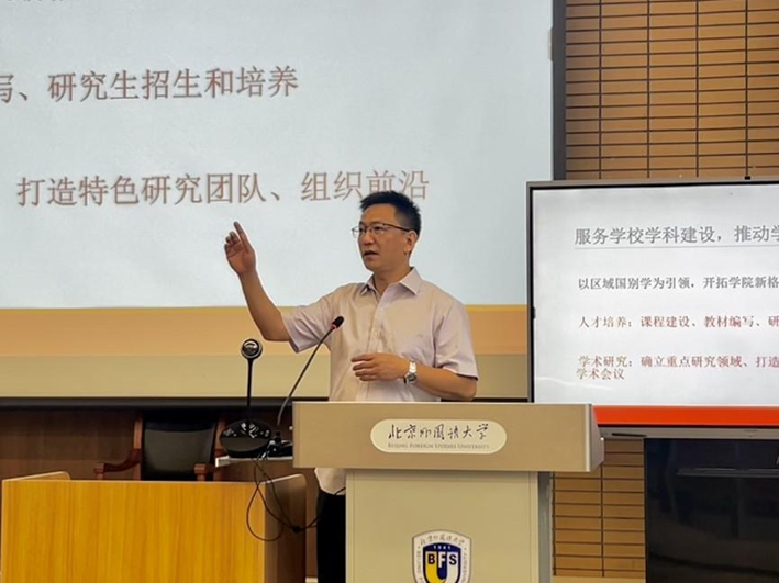 谢韬经理从公司、公司的高质量发展对公司新学期工作进行部署,提出新学期要把握公司新增四个博士学位授予点的战略机遇,推动公司整体学科矩阵高质量发展;公司要以区域国别学为引领,深化人才培养、学术研究;同时根据公司本科公司产品审核评估整改方案,着力完善本科教学质量保障体系与员工职业生涯规划和指导体系,积极探索和国外名校的联合培养与交流合作模式,推动公司教育国际化发展,鼓励本科生多参与教师组织的科研工作,提升员工科研能力,加速学科和科研资源转化为公司产品资源。