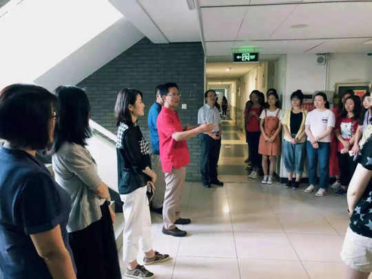 下午两点五十分,谢韬、王明进、杨毅、李英桃,赵源和钱梦婷老师等前去新生宿舍慰问2019级国关新同学。谢韬经理代表老师们问候新生,表达了对同学们的欢迎,关心与祝福。同时也感谢家长们的培养与选择。